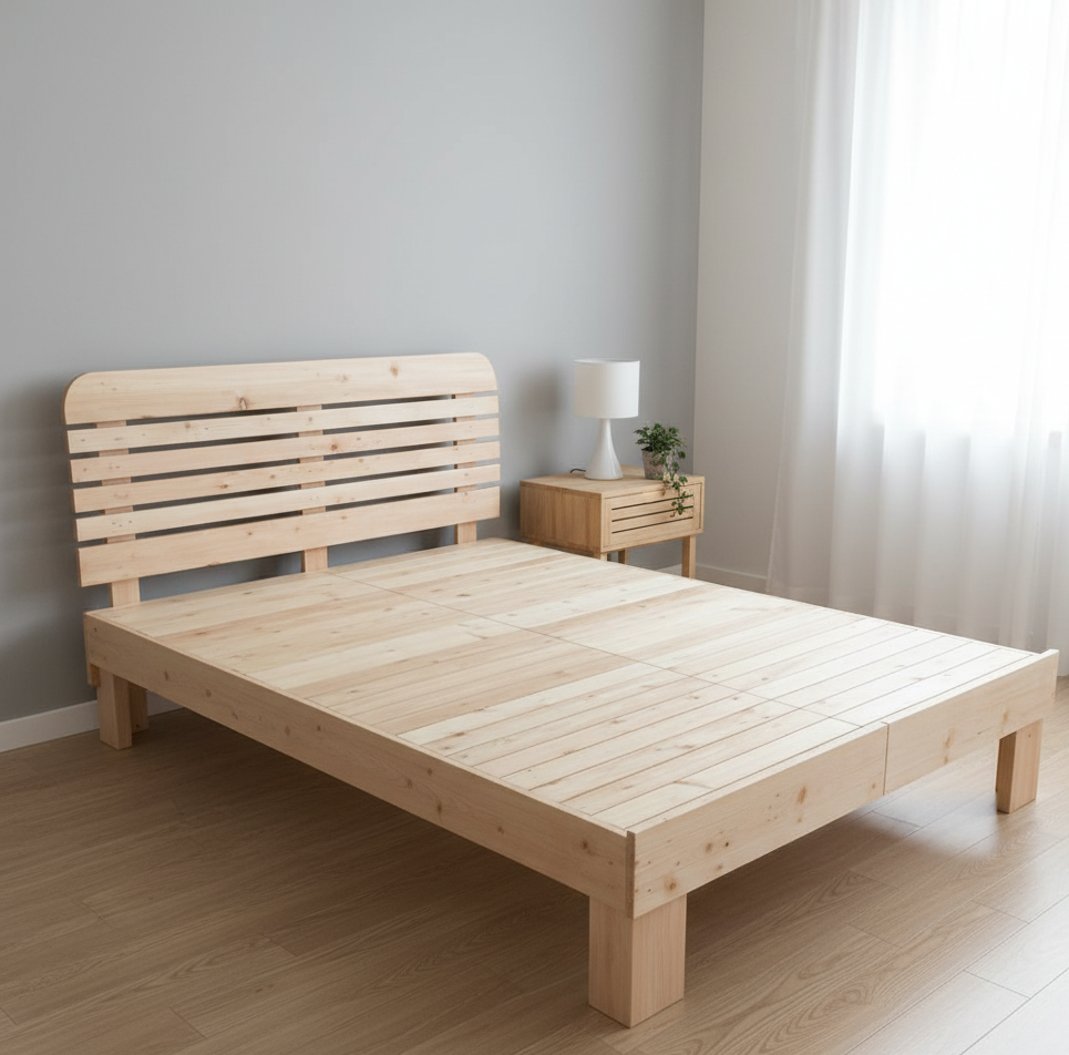 Amara- Made with 100% upcycled pine wood. Enhance the decor in your bedroom with this cot. This bed is an excellent choice for a modern room decor. The cot is built to fit in a standard Queen size mattress of 78 inches x 60 inches dimension.