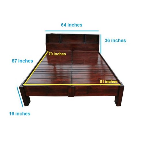 Cecellia Queen- Save space while creating a cozy sleep environment with this classic bed. It has open space over the headrest for keeping small things like your wrist watch, spectacles, mobile phones,etc. Made with 100% upcycled pine wood. The cot is built to fit in a standard Queen size mattress of 78 inches x 60 inches dimension.