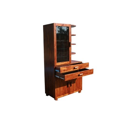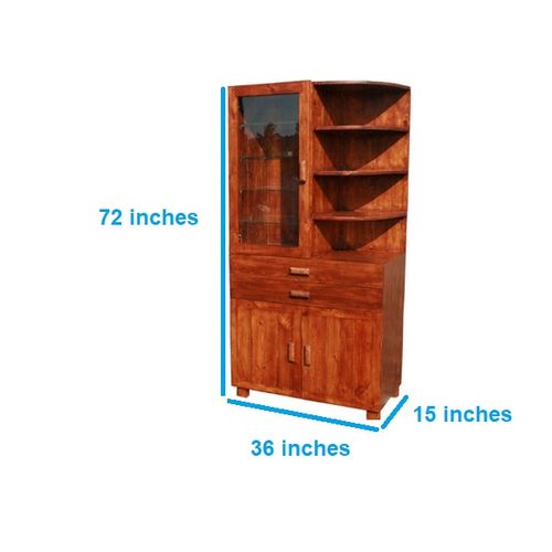 Chancery- This product will add lots of utility and charm to your home. Tall and lofty, this cabinet is an ideal piece of furniture to store your crockery's. It features four exterior shelves that gives an ample of storage space, double door cabinet with two tier of shelving inside, single glass cabinet with five tier of shelving inside and also two spacious drawers for cutlery items.